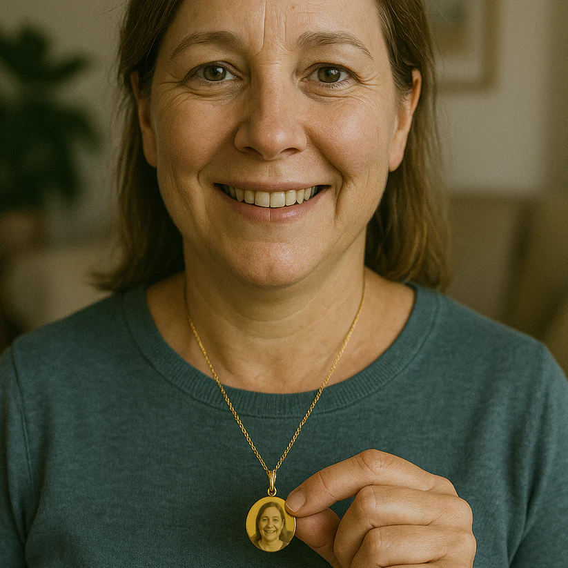 Sevdiğin kişinin, ailenin, evcil hayvanının ya da kaybettiğin birinin fotoğrafını bu özel kolyeye lazerle işliyoruz.